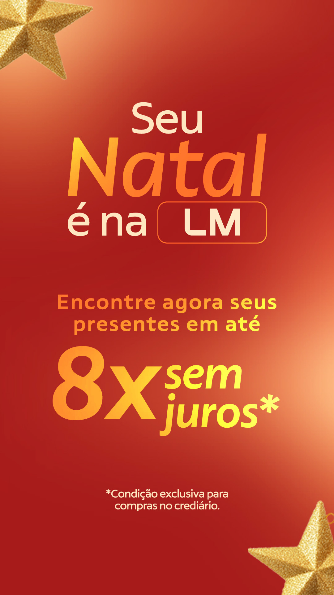 A época mais especial do ano chegou e você ainda não sabe onde encontrar os presentes da família? Nas Lojas LM, você garante os lançamentos em roupas, calçados e moda casa das melhores marcas para quem você ama, com parcelamento em até 8x sem juros no crediário da loja.