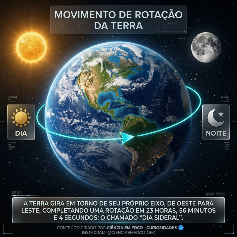 A Mentira do Relógio: Nós arredondamos o dia para 24 horas por pura conveniência social, mas a Terra leva exatamente 23 horas, 56 minutos e 4 segundos para dar uma volta completa em torno do seu próprio eixo (girando sempre de oeste para leste). Na astronomia, esse ciclo preciso é conhecido como "dia sideral"!