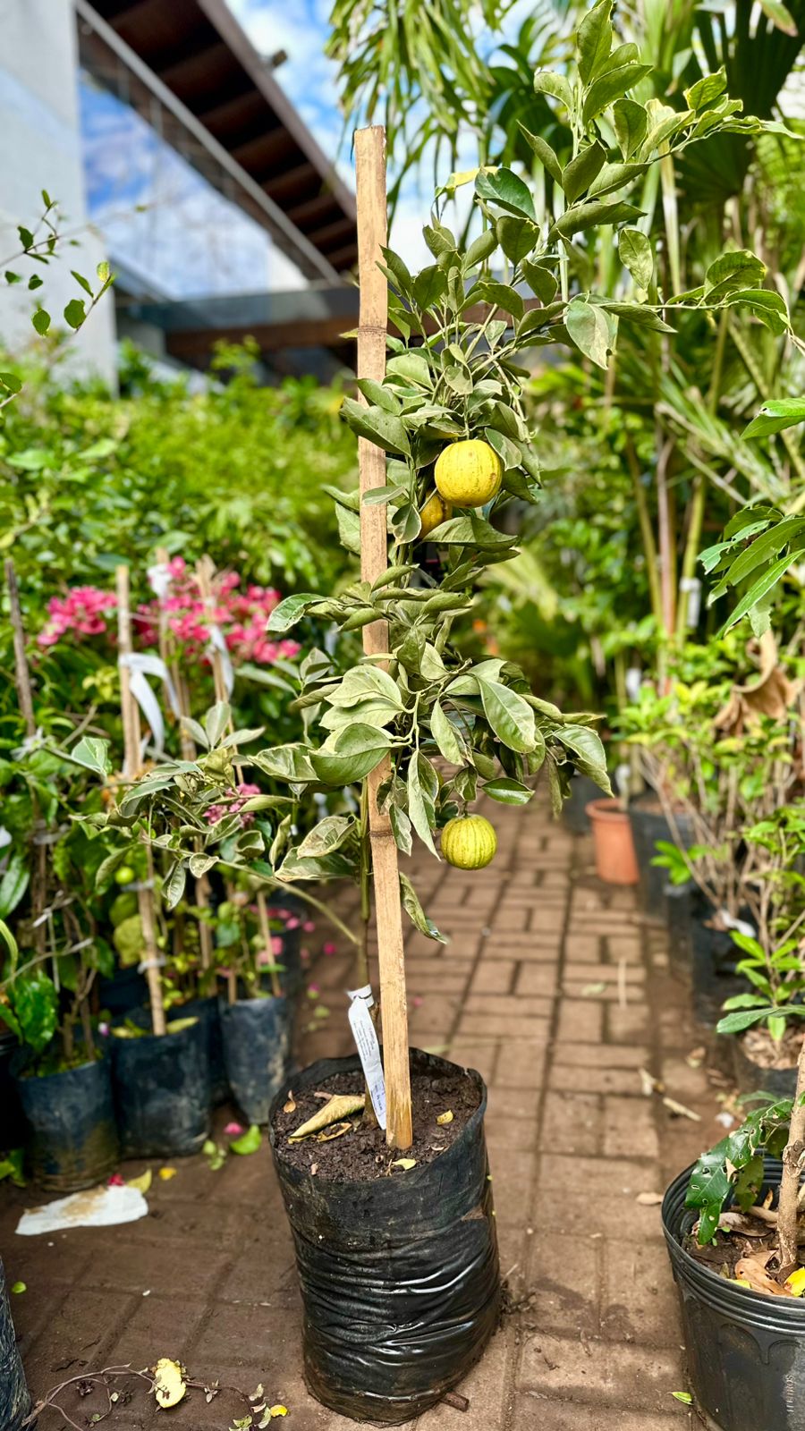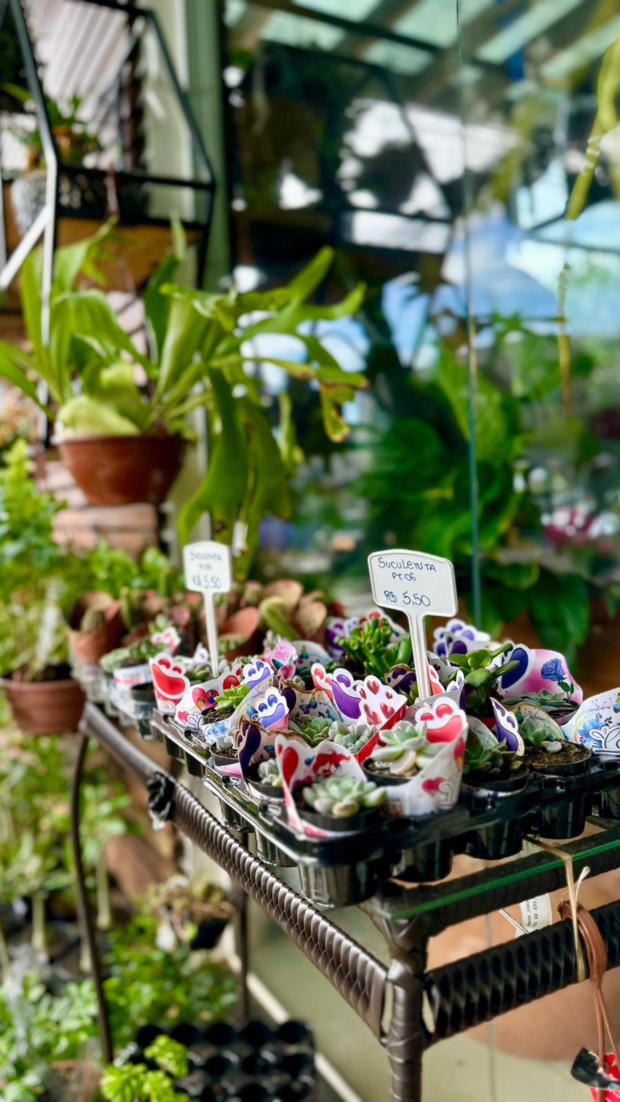 Sobre a linha de plantas frutíferas o legal é que tem várias mudas com frutos. “Temos mudas mais novas, saudáveis e que estão se desenvolvendo, e mudas já desenvolvidas, produzindo frutos. Essa diferença, inclusive, é o que define o valor da planta. Elas estão em saquinhos e podem ser plantadas tanto no chão como em vasos”, explica a gerente Jaque Rodrigues.