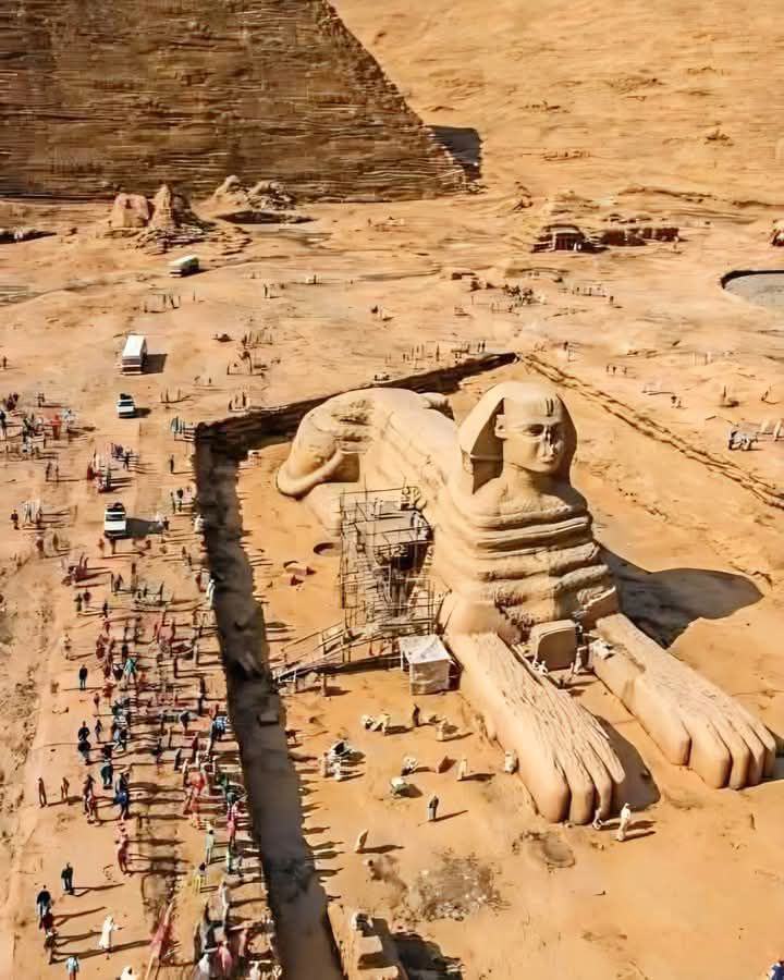 Da página Tchê/Facebook: “A Grande Esfinge de Gizé, no Egito, é a maior estátua esculpida em um único bloco de pedra do mundo! Com impressionantes 73,5 metros de comprimento, 19,3 metros de largura e 20,2 metros de altura, ela foi talhada diretamente de uma gigantesca formação de calcário no planalto de Gizé. Misteriosa, enigmática e imponente, a Esfinge intriga a humanidade há milênios. Seu olhar fixo para o horizonte e seu corpo de leão com cabeça humana carregam simbolismos profundos e ainda hoje nos perguntamos: quem a construiu? Por quê? E como?”.