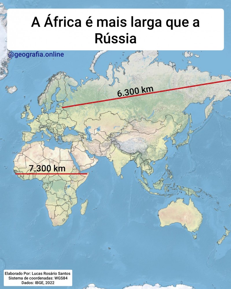 Embora muitas pessoas imaginem que a Rússia seja o maior território do planeta em todas as dimensões, o continente africano é, na realidade, mais largo de oeste a leste, cerca de 7.300 quilômetros, contra 6.300 quilômetros da Rússia. Essa diferença costuma passar despercebida por causa da projeção de Mercator, um tipo de mapa que amplia as áreas localizadas em altas latitudes, como a Europa e a Ásia setentrional, e reduz as regiões próximas ao Equador, onde está a África. Como resultado, a Rússia parece muito maior do que realmente é, enquanto a verdadeira imensidão africana é subestimada. Esse exemplo mostra como as escolhas cartográficas podem distorcer nossa percepção sobre o tamanho real dos continentes e países no globo.
