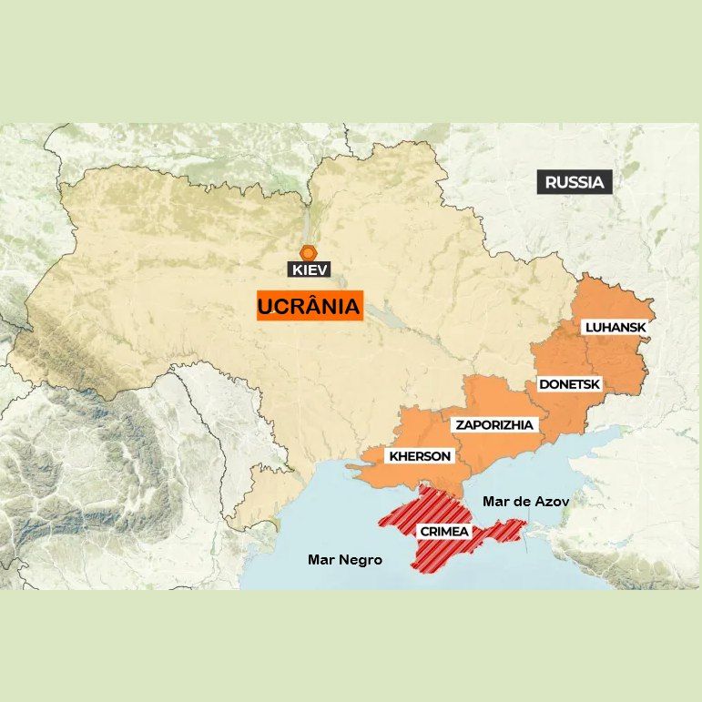 A Ucrânia perdeu 18% do seu território desde a invasão russa em 2022. As regiões de Donetsk, Luhansk, Zaporizhzhia e Kherson estão sob ocupação russa, consolidada após contra-ofensivas ucranianas com resultados limitados. A Crimeia já havia sido anexada em 2014. No auge da guerra, 30% do país chegou a ser controlado pela Rússia. Hoje, cerca de 3 a 3,5 milhões de ucranianos vivem sob ocupação. Desde sua independência em 1991, a Ucrânia busca se aproximar da União Europeia e da OTAN — um dos principais pontos de atrito com Moscou.