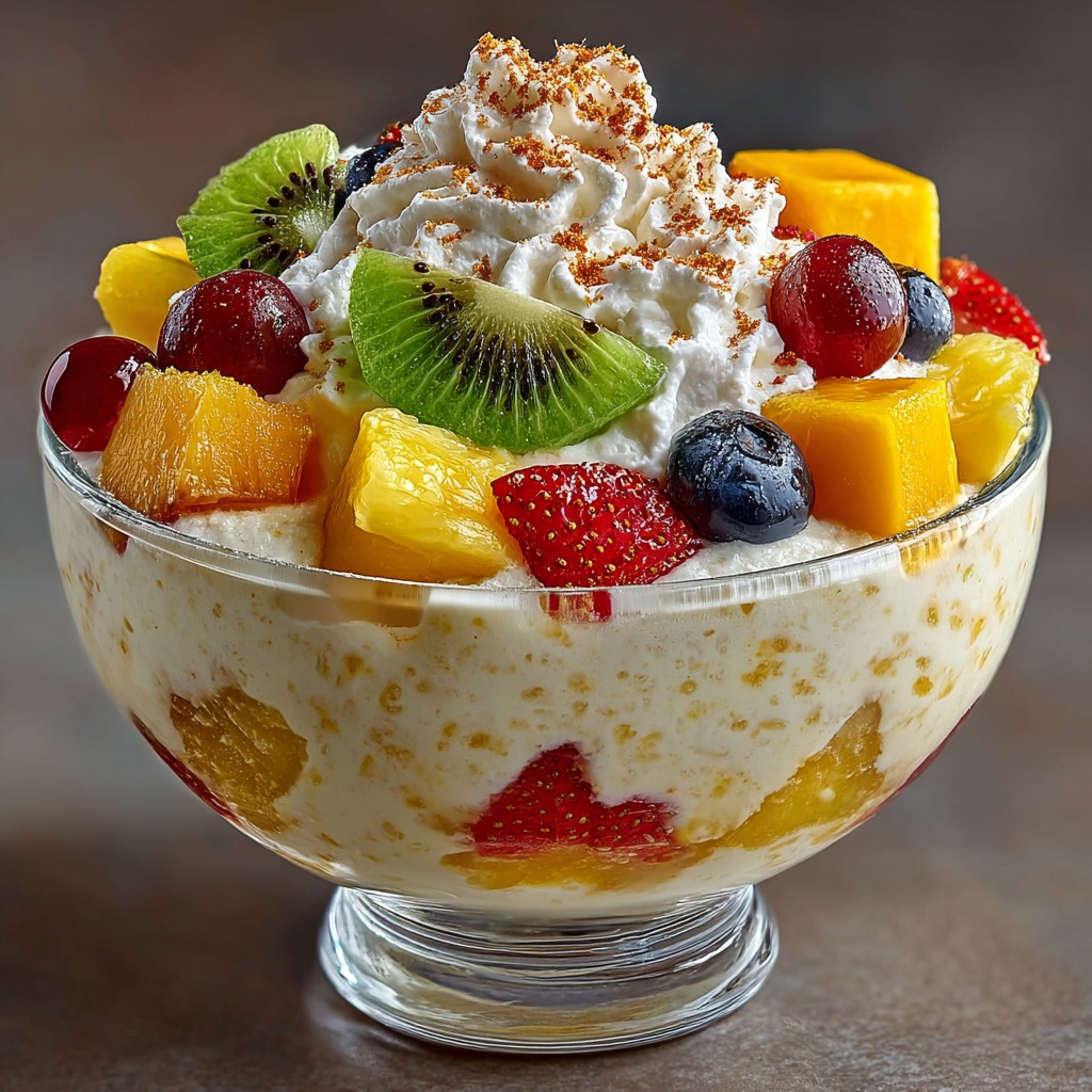 SOBREMESA GELADA DE LEITE NINHO COM FRUTAS TROPICAIS