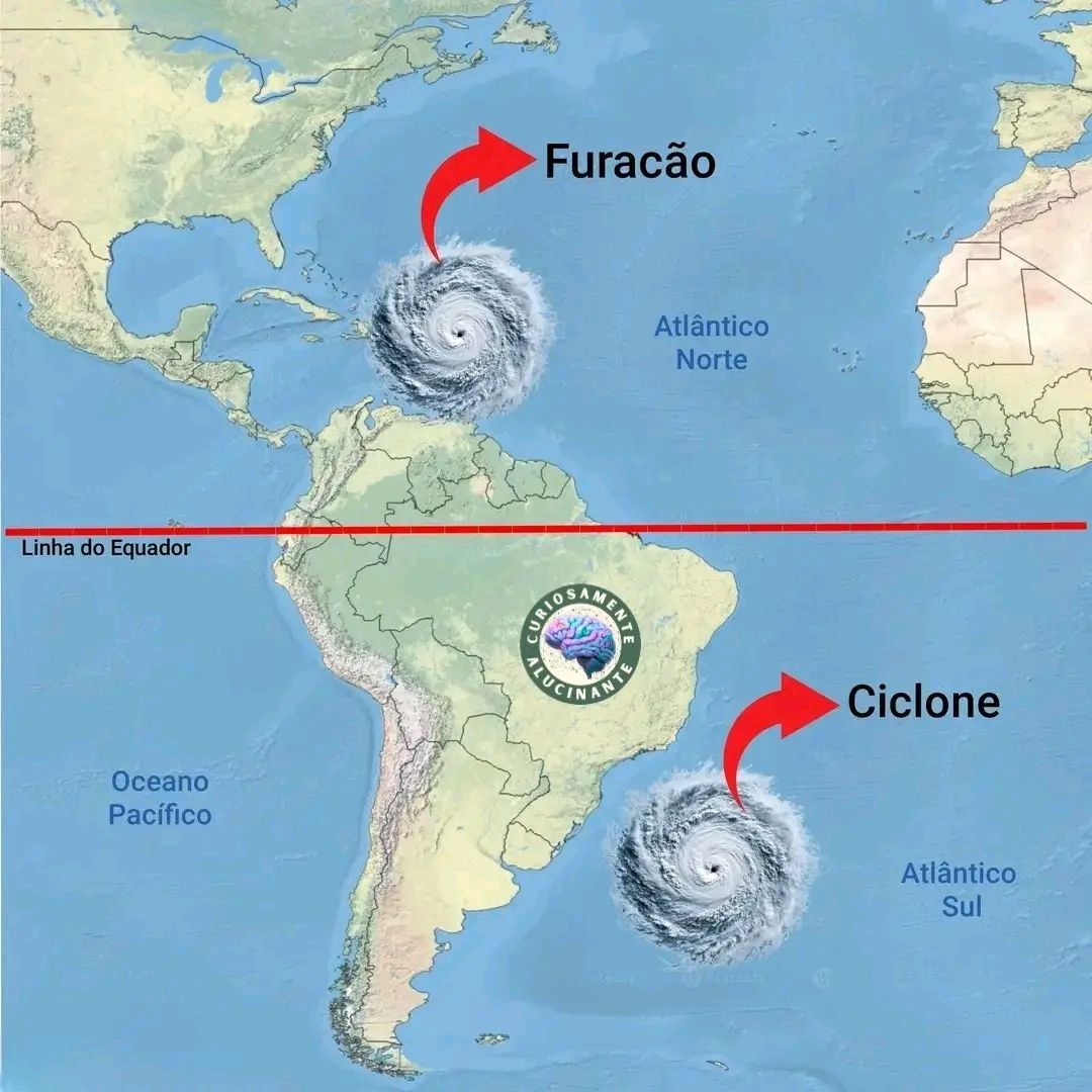 Apesar da mudança de nome, a estrutura é a mesma. A Linha do Equador funciona como um divisor natural entre essas áreas e é justamente sua presença que impede a formação de ciclones na faixa equatorial, já que ali o efeito Coriolis é muito fraco. Esse efeito é o responsável por fazer os sistemas girarem em sentidos opostos nos hemisférios: