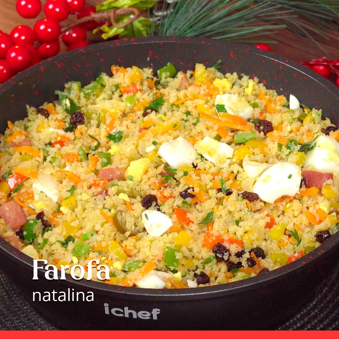 1. Em uma panela, adicione o bacon picado e deixe fritar. 2. Em seguida, acrescente a cebola e o alho picados e deixe refogar. 3. Entre com os pimentões vermelho, amarelo e verde picados e misture. 4. Depois, adicione a cenoura ralada, a azeitona, a uva passa e tempere com o sal, a pimenta-do-reino e misture novamente. 5. Acrescente a farinha panko e misture bem até incorporar. 6. Finalize com os ovos cozidos e a salsinha e a cebolinha.