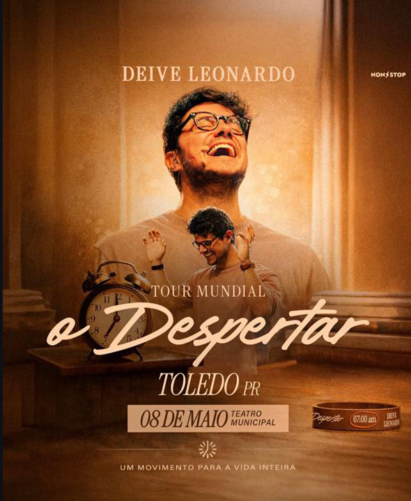 8/5: Deive Leonardo – O Despertar. Local: Teatro Municipal, 19h. Realização: Mantovani Promoções.